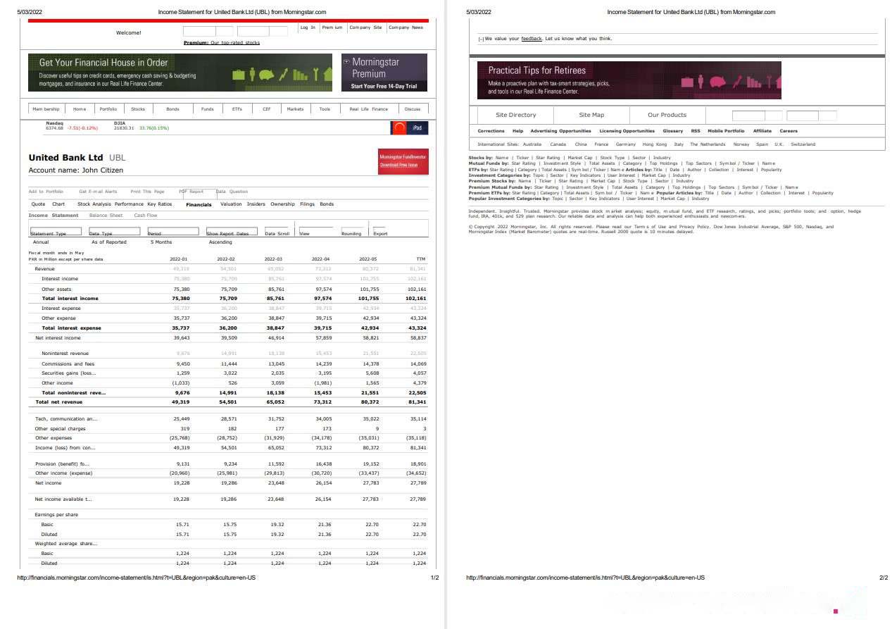 United Kingdom United Bank Ltd (UBL) bank incoming statement, Word and PDF template, 2 pages download template file