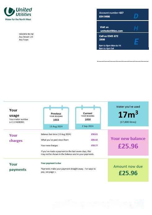United Kingdom United Utilities business utility bill Word and PDF template download template file