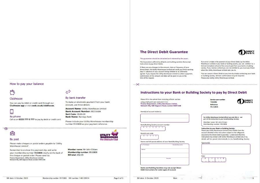 United Kingdom Utility Warehouse electricity utility bill template in Word and PDF format (6 pages) 5 6 download template file