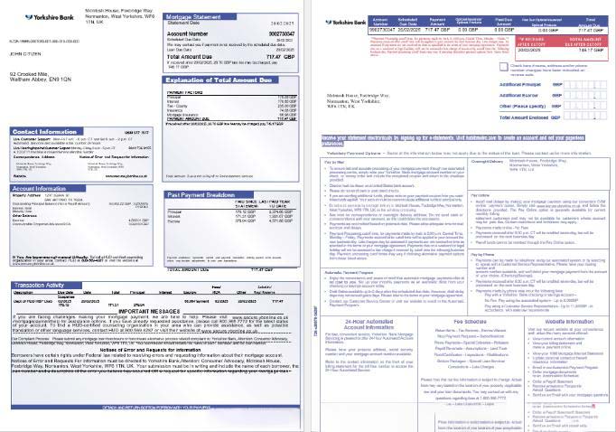 United Kingdom Yorkshire Bank mortgage statement in Word and PDF formats, 3 pages 1 2 download template file