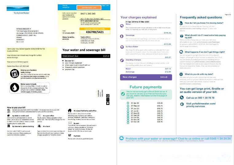United Kingdom Yorkshire water utility bill template in Word and PDF format (2 pages) download template file