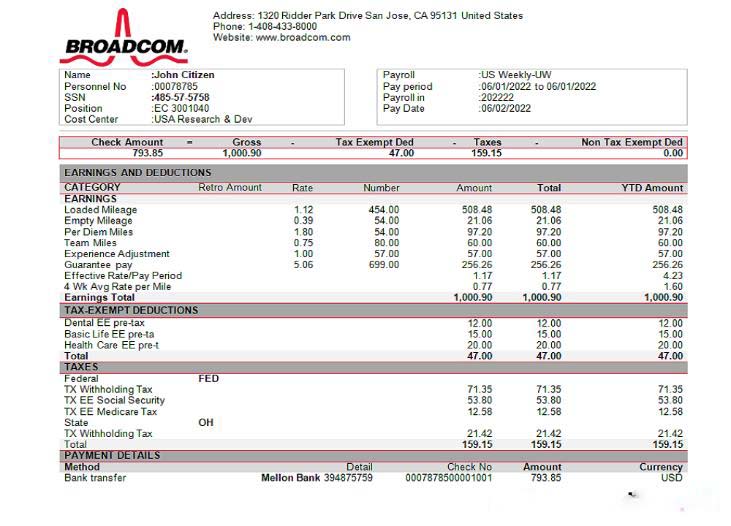 USA ADVANTANGE resourcing paystub in Word and PDF formats download template file