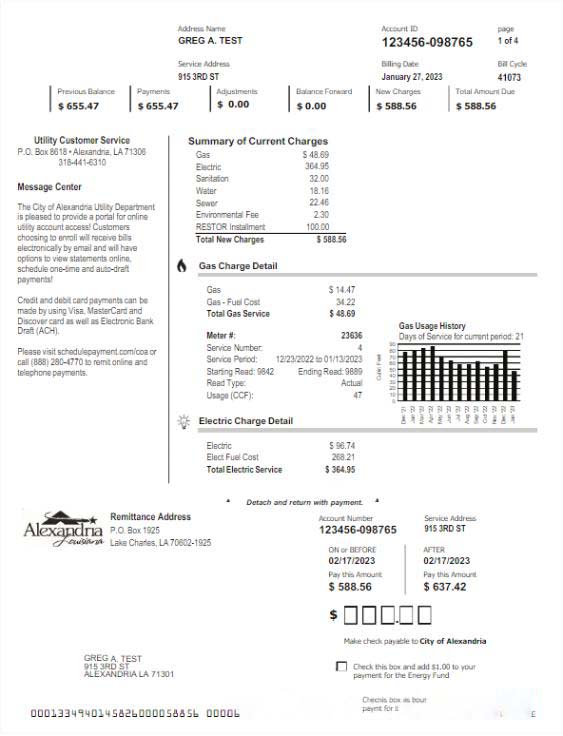 USA ALEXANDRIA utility bill Word and PDF template download template file