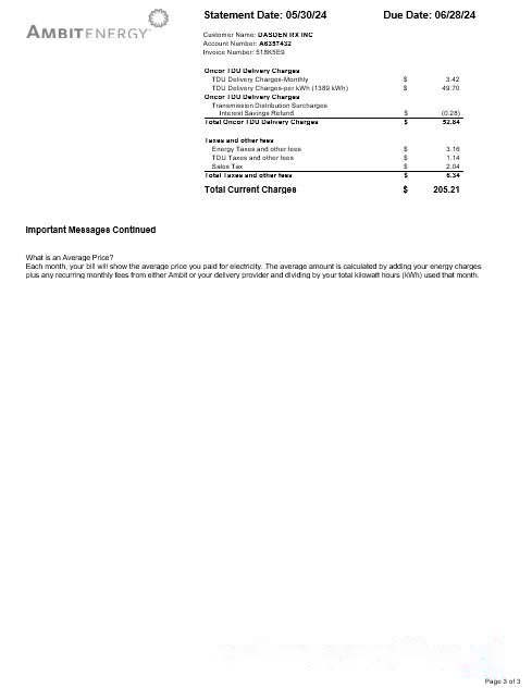 USA Ambit Energy business utility bill Word and PDF template 3 download template file