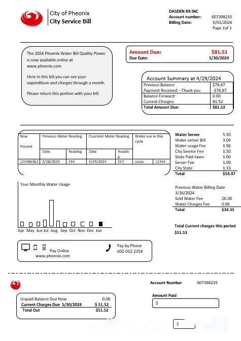 USA Arizona City of Phoenix business utility bill template in Word and PDF formats download template file