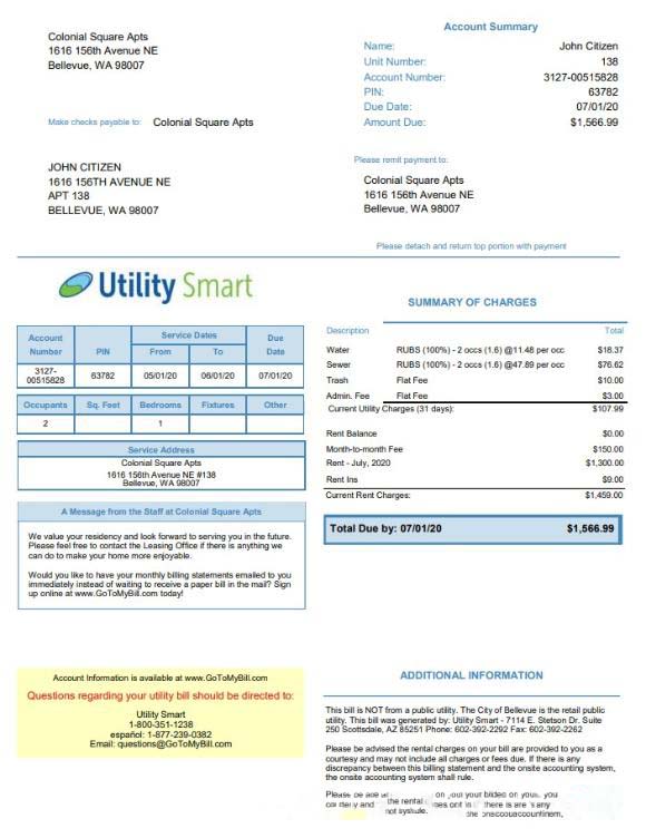 USA Arizona Utility Smart utility bill template in Word and PDF format (.doc and .pdf) download template file