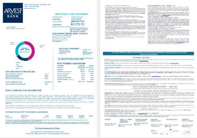 USA Arvest bank mortgage loan statement in Word and PDF formats , 4 pages 1 2 download template file