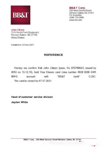 USA BB&T closure reference download template file