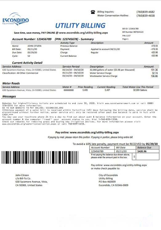 USA California Escondido City of Choice utility bill template in Word and PDF format download template file