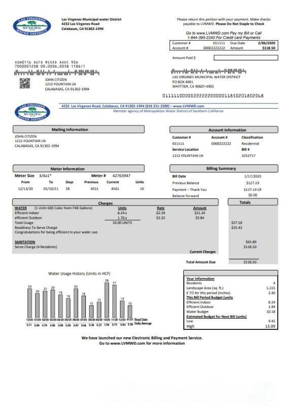 USA California Las Virgenes Municipal Water District utility bill template in Word and PDF format download template file