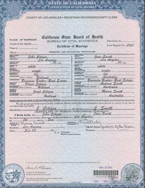 USA California Marriage Certificate template in PSD format download template file