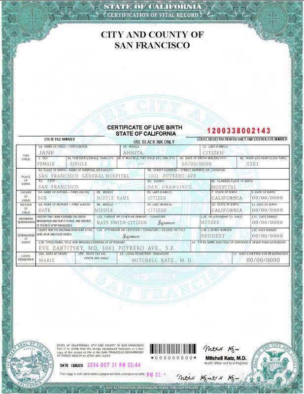 USA California state birth certificate template in PSD format download template file