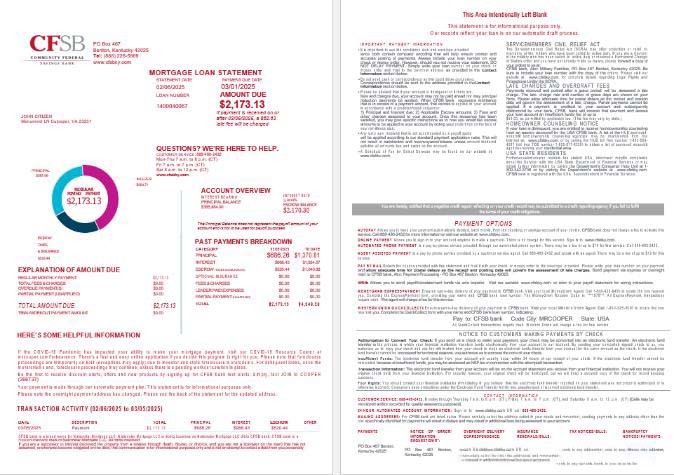 USA CFSB bank mortgage loan statement in Word and PDF formats , 4 pages 1 2 download template file