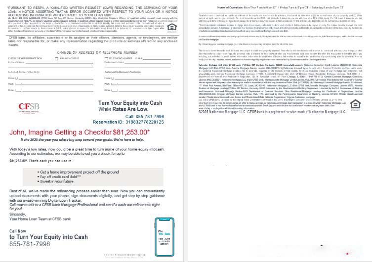 USA CFSB bank mortgage loan statement in Word and PDF formats , 4 pages 3 4 download template file