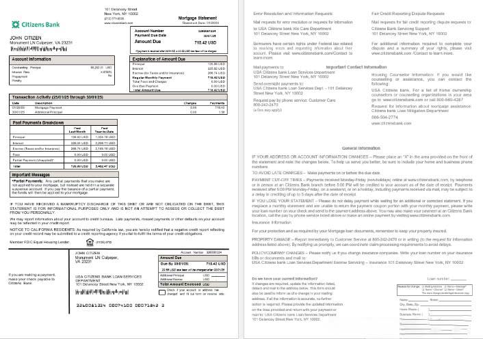 USA Citizens bank mortgage statement in Word and PDF formats download template file