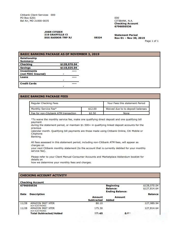 USA City Bank statement template in Word and PDF format download template file