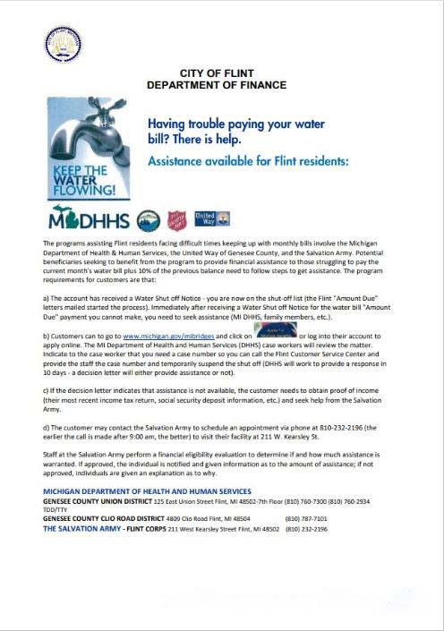 USA City of Flint Michigan Department of Finance utility bill shutoff notice, Word and PDF template download template file