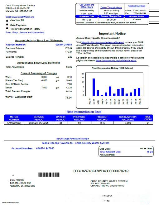 USA Cobb County Water System utility bill template in Word and PDF formats download template file