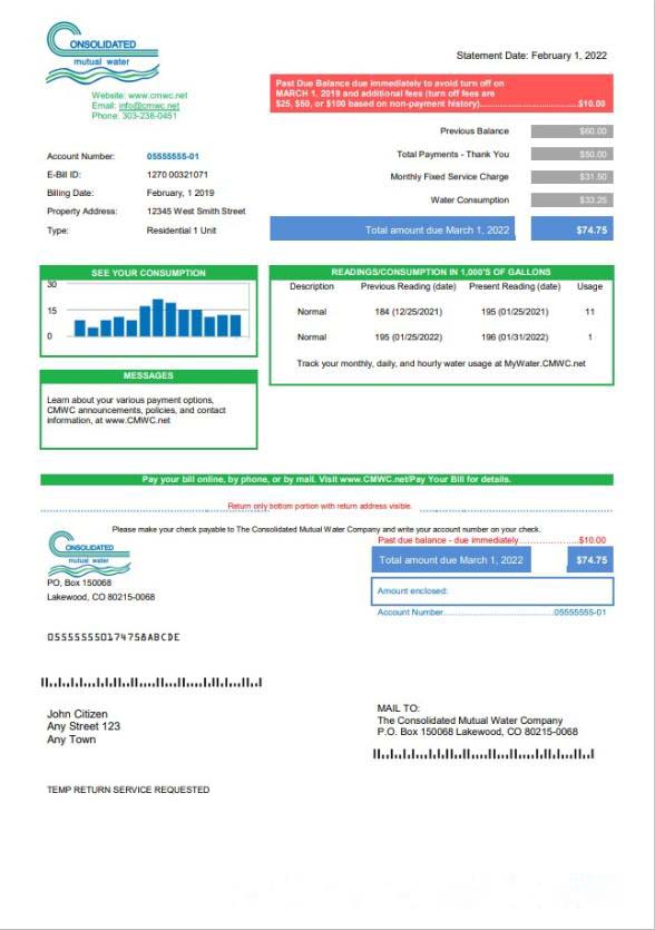 USA Consolidated Mutual Water utility bill template in Word and PDF format download template file
