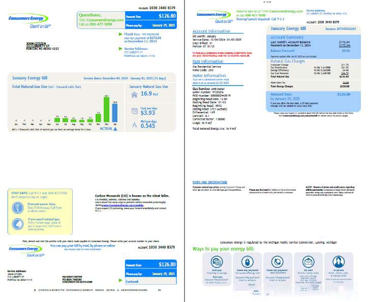 USA Consumers Energy utility bill template in Word and PDF formats, 2 pages, vesion 3 download template file