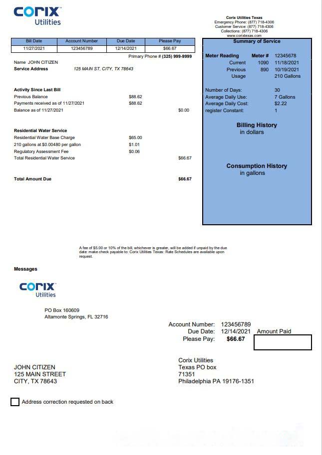 USA Corix Utilities bill template in Word and PDF format download template file