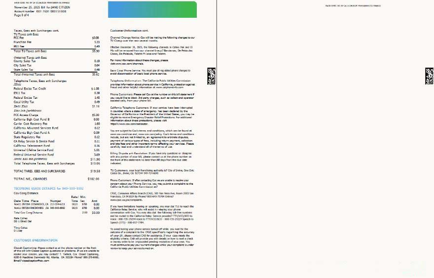 USA Cox utility bill template in Word and PDF formats, 4 pages, 3 4 pages download template file