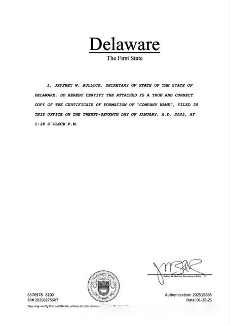 USA Delaware registration certificate Word and PDF template download template file