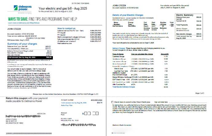 USA Delmarva Power utility bill template in Word and PDF formats, 5 pages, 1 2 pages download template file