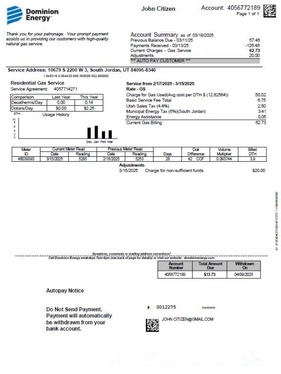 USA Dominion Energy utility bill template in Word and PDF formats, version 3 download template file