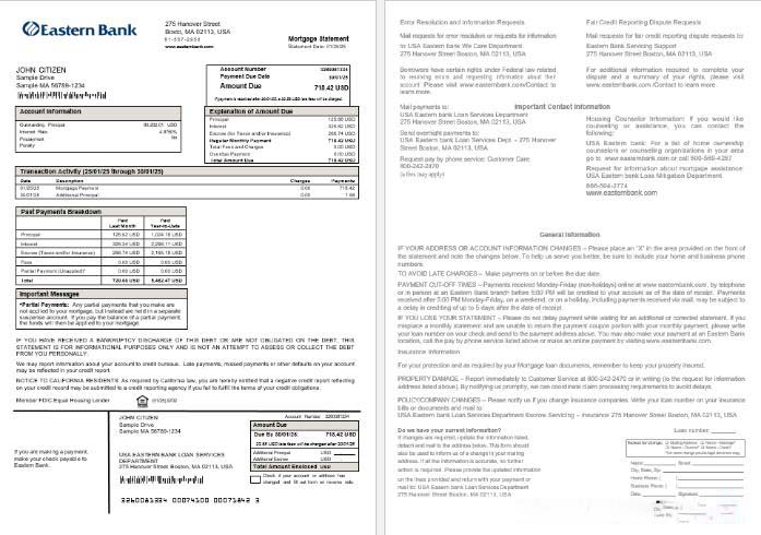 USA Eastern Bank mortgage statement in Word and PDF formats download template file