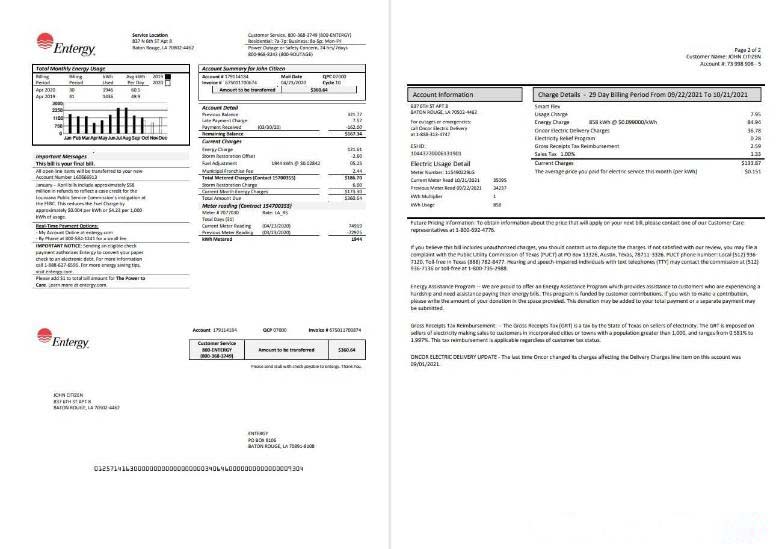 Be the first to review “USA Entergy electricity utility bill template in Word and PDF format (2 pages) download template file”