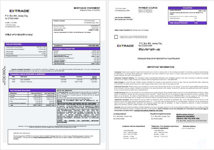 USA Etrade bank mortgage statement in Word and PDF formats 1 2 download template file