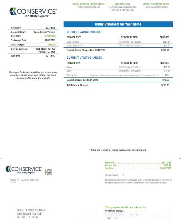 Be the first to review “USA FLORID A CONSERVICE utility bill Word and PDF template download template file”