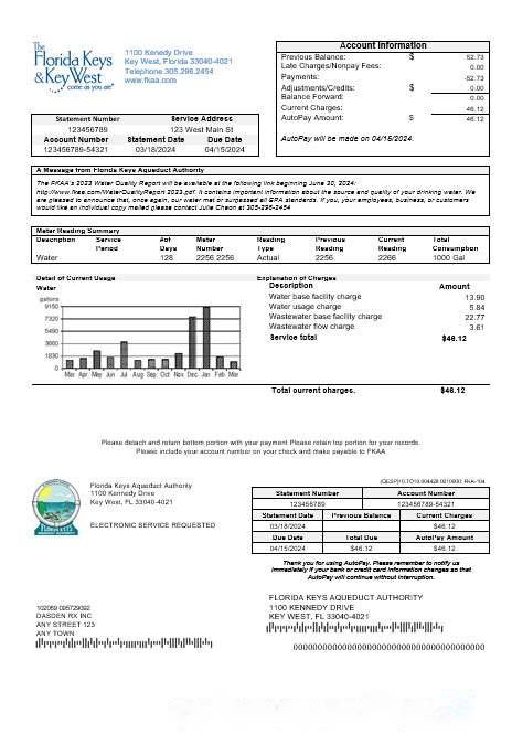 USA Florida Florida Keys business utility bill template in Word and PDF formats download template file