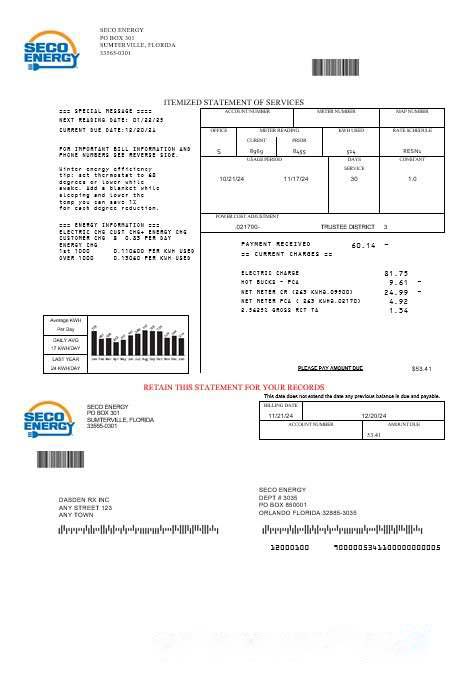 USA Florida Seco Energy business utility bill template in Word and PDF formats download template file