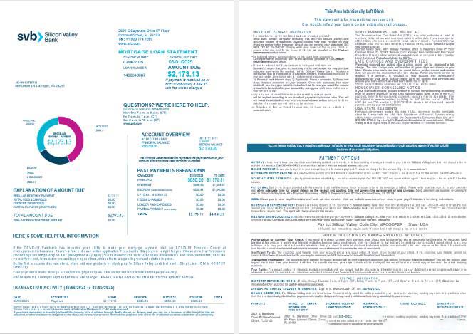 USA Florida Silicon Valley bank mortgage loan statement in Word and PDF formats , 4 pages 1 2 download template file