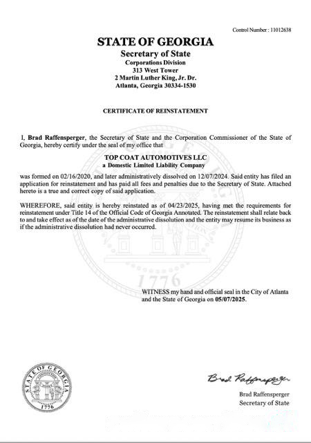 USA Georgia certificate of reinstatement Word and PDF template download template file