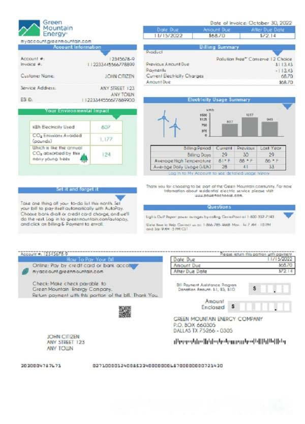 USA Green Mountain Energy utility bill template in Word and PDF format download template file