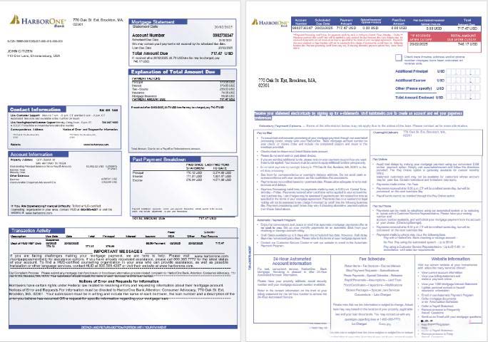 USA HarborOne Bank mortgage statement in Word and PDF formats, 3 pages 1 2 download template file
