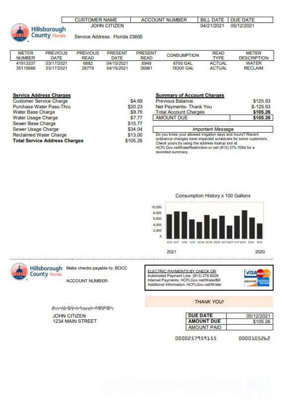 USA Hillsborough County utility bill template in Word and PDF format download template file