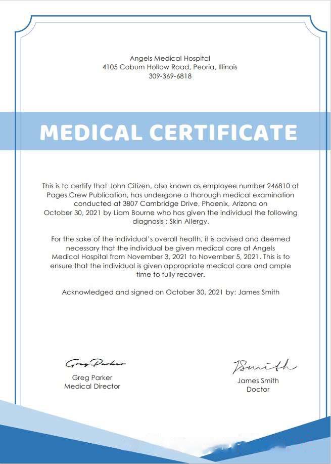USA Hospital Medical cert download template file
