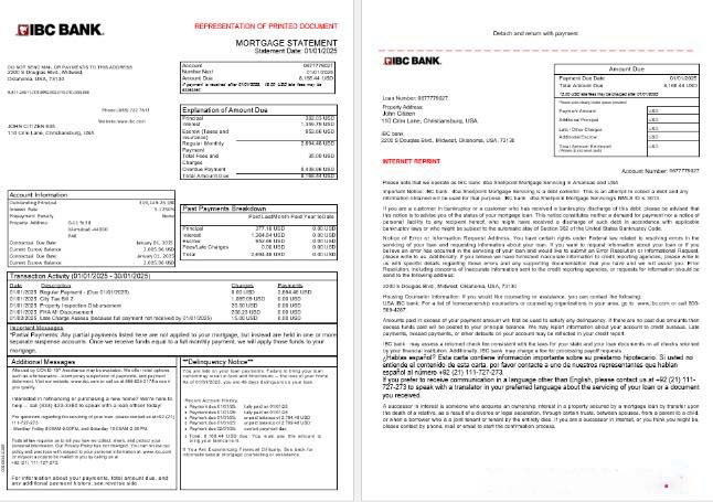 USA IBC bank mortgage statement in Word and PDF formats, 3 pages 1 2 download template file
