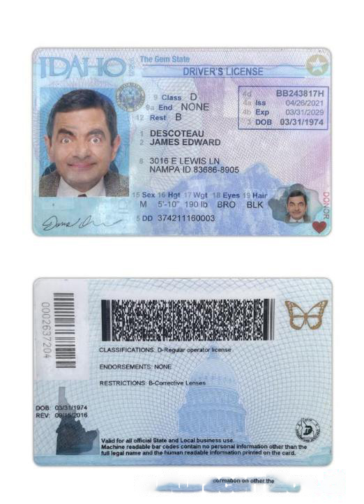 USA Idaho Driving License 2021 present download template file