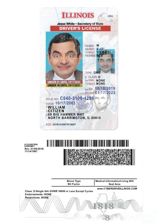 USA Illinois Driving License under 21 download template file