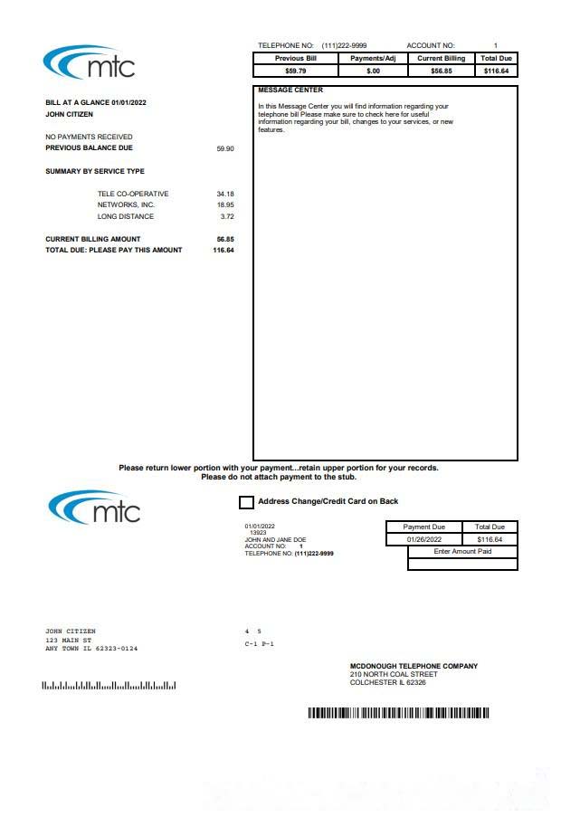 USA Illinois MTC utility bill template in Word and PDF format download template file