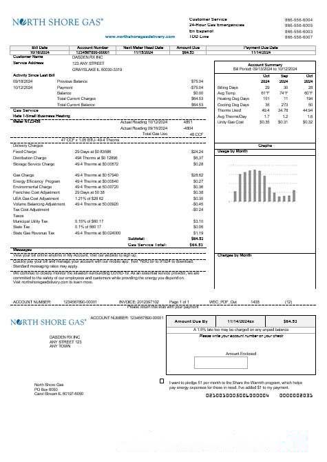 USA Illinois North Shore Gas business utility bill template in Word and PDF formats download template file