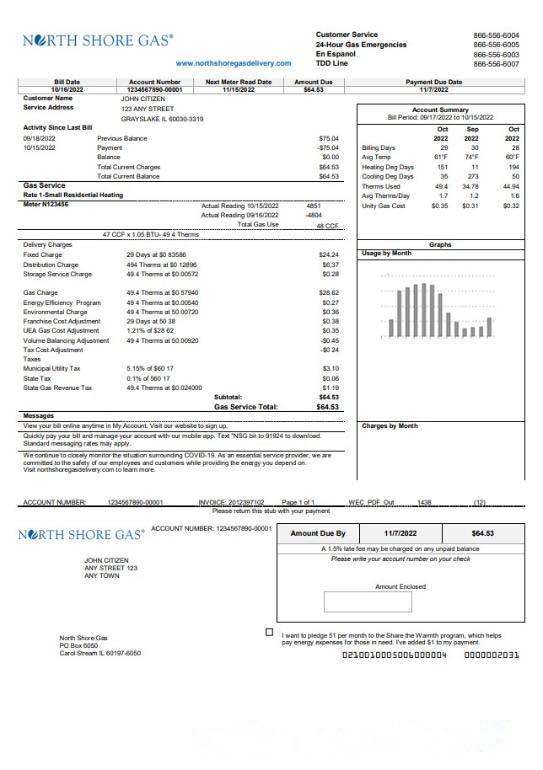 USA Illinois North Shore Gas utility bill template in Word and PDF format download template file