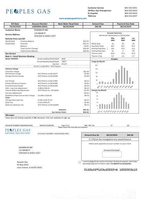 USA Illinois Peoples Gas business utility bill template in Word and PDF formats download template file
