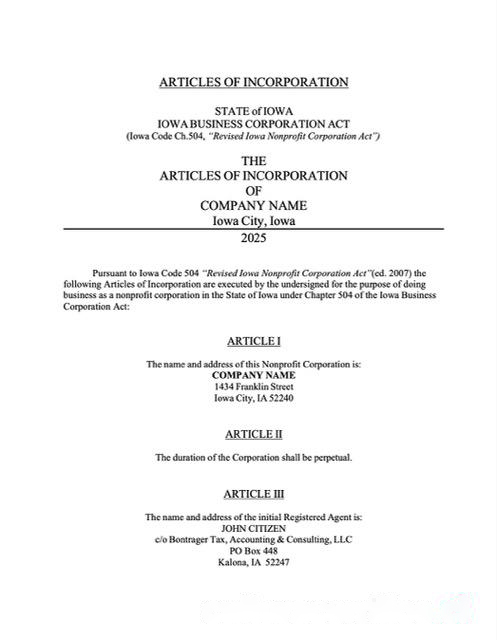 USA Iowa articles of incorporation Word and PDF template download template file