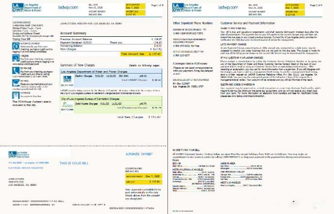 USA LA DWP utility bill template in Word and PDF formats, 4 pages, version 2, 1 2 pages download template file